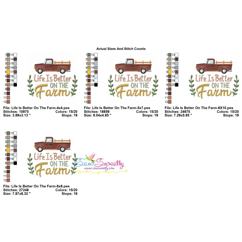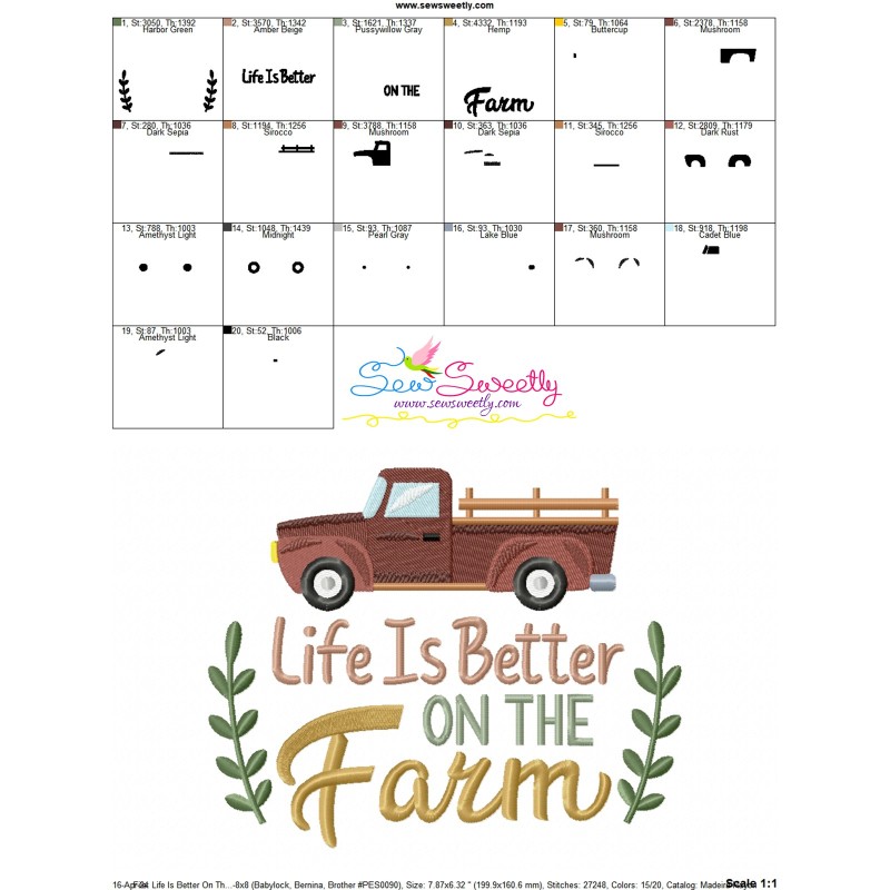 Embroidery Design Pattern - Life Is Better On The Farm Truck-3