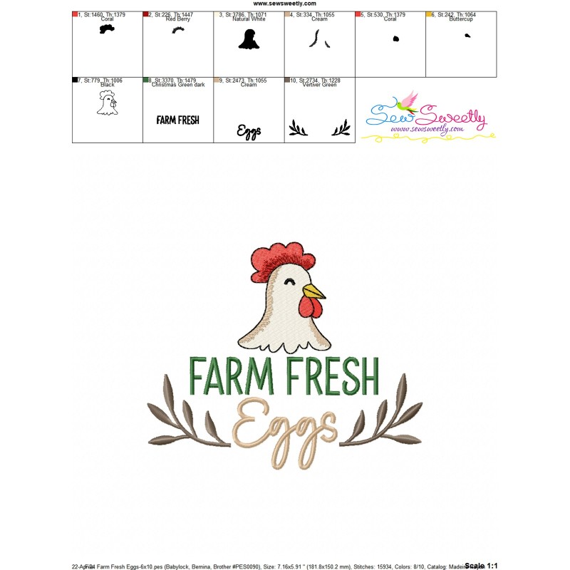 Farm Fresh Eggs Machine Embroidery Design Pattern.