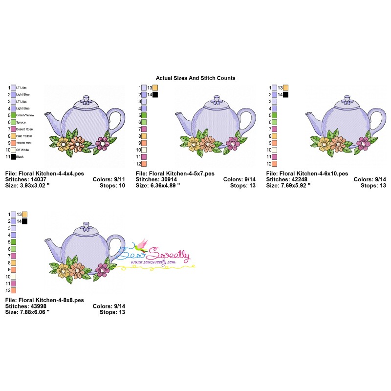 Floral Kitchen-4 Exclusive Machine Embroidery Design Pattern For Baking And Kitchen Embroidery Projects.