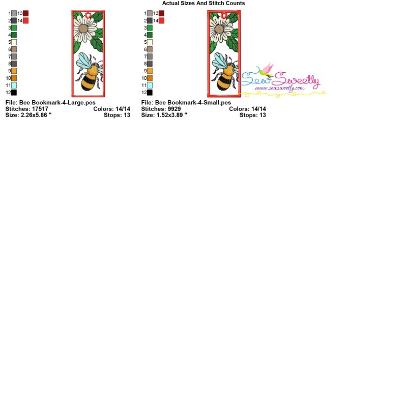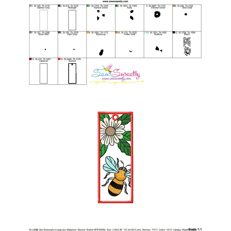 Bee And Flowers Bookmark 4 Exclusive Machine Embroidery Design Pattern.