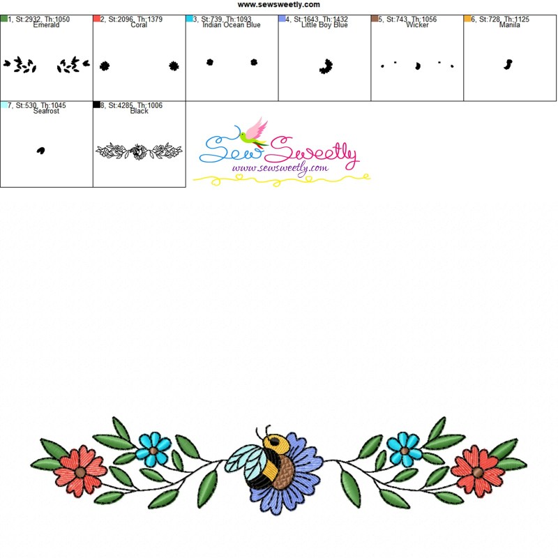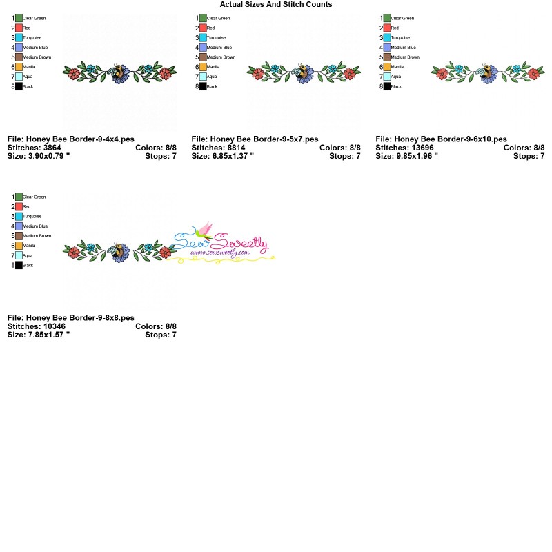 Honey Bee Border - 9 Exclusive Machine Embroidery Design Pattern.