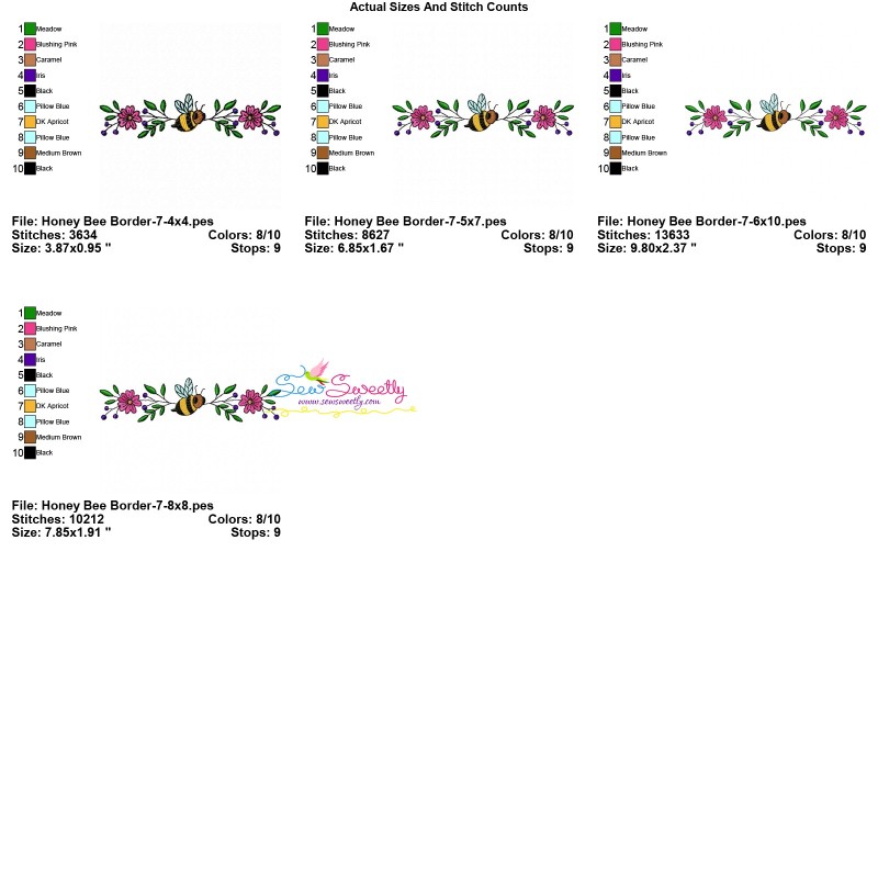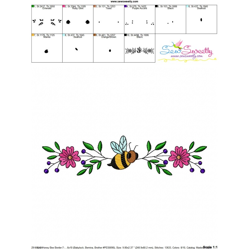Honey Bee Border - 7 Exclusive Machine Embroidery Design Pattern.