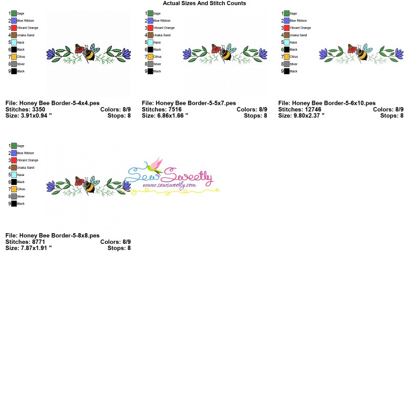 Honey Bee Border - 5 Exclusive Machine Embroidery Design Pattern.