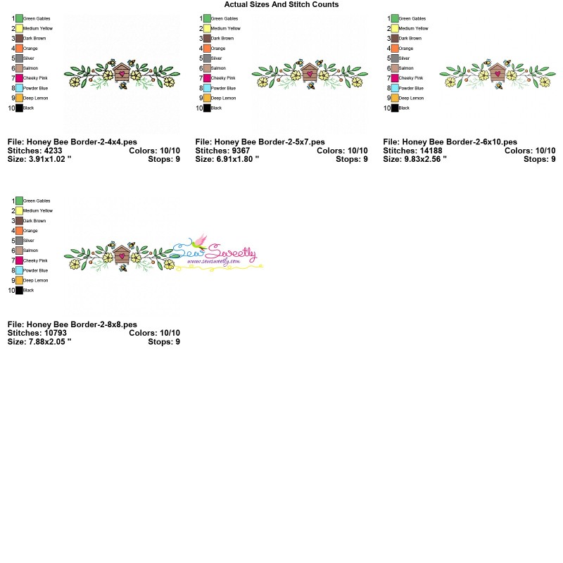 Honey Bee Border - 2 Exclusive Machine Embroidery Design Pattern.