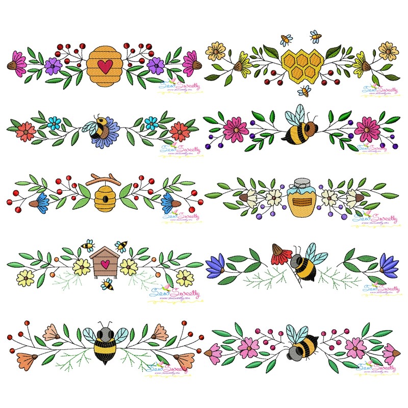 This design set includes 10 beautiful honey bee border machine embroidery designs.