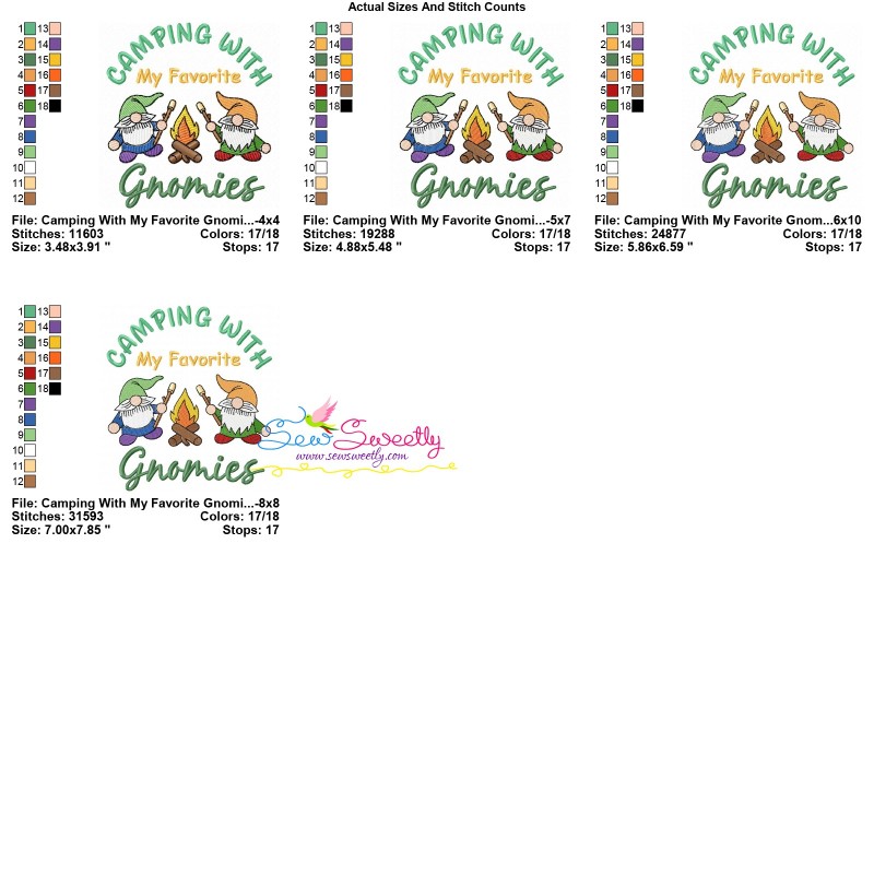 Camping With My Favorite Gnomies Machine Embroidery Design Pattern For Camping Projects.