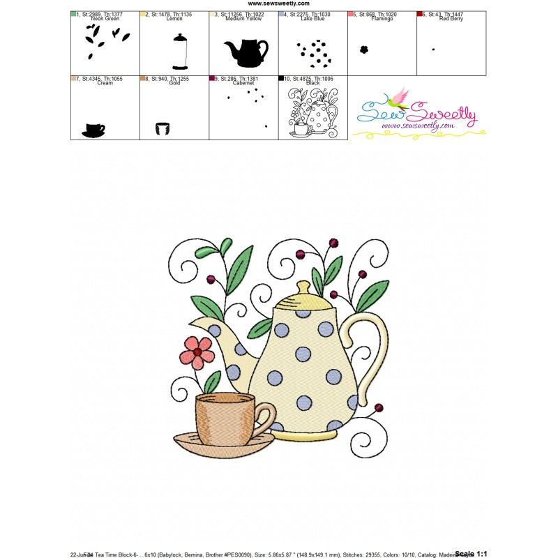 Tea Time Block-6 Exclusive Machine Embroidery Design Pattern.