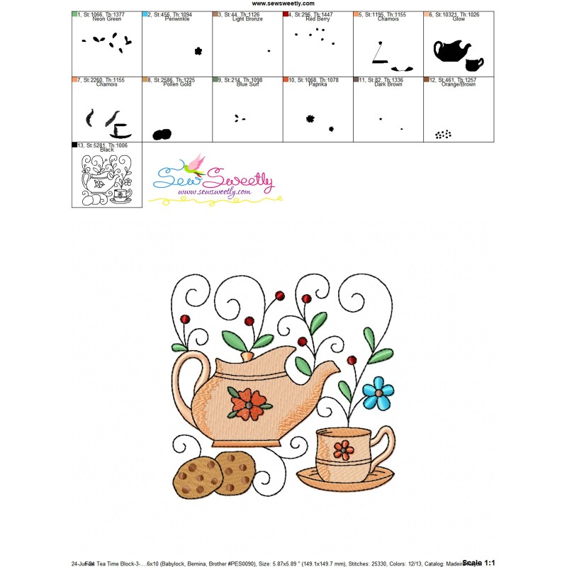 Tea Time Block-3 Exclusive Machine Embroidery Design Pattern.