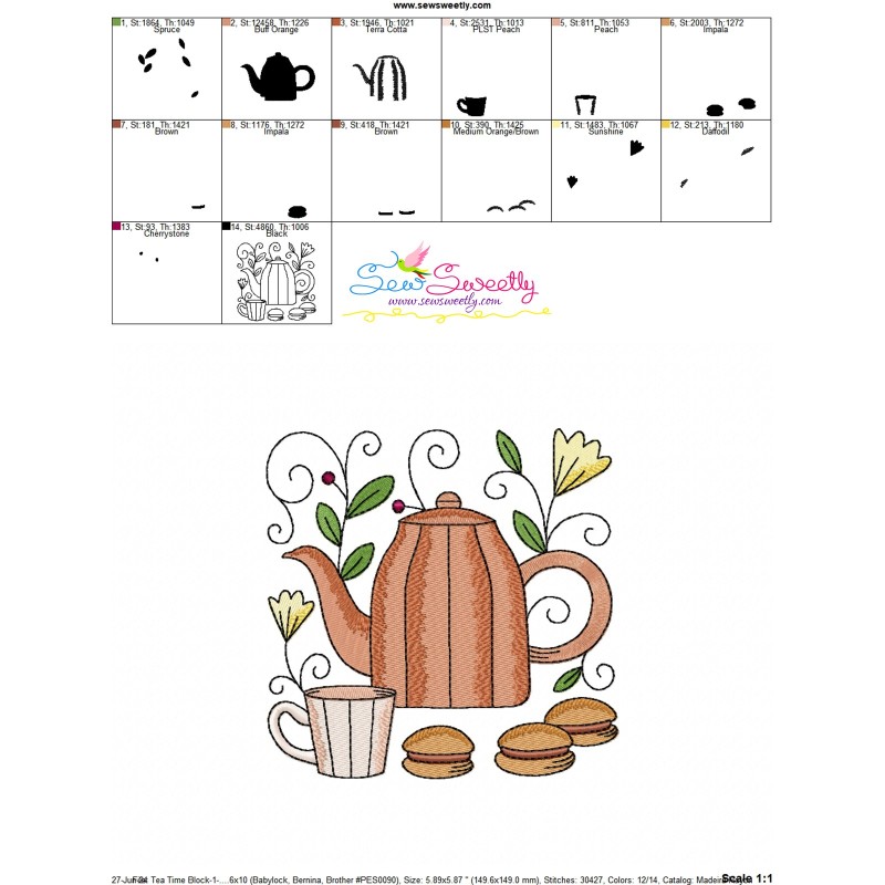 Tea Time Block-1 Exclusive Machine Embroidery Design Pattern.