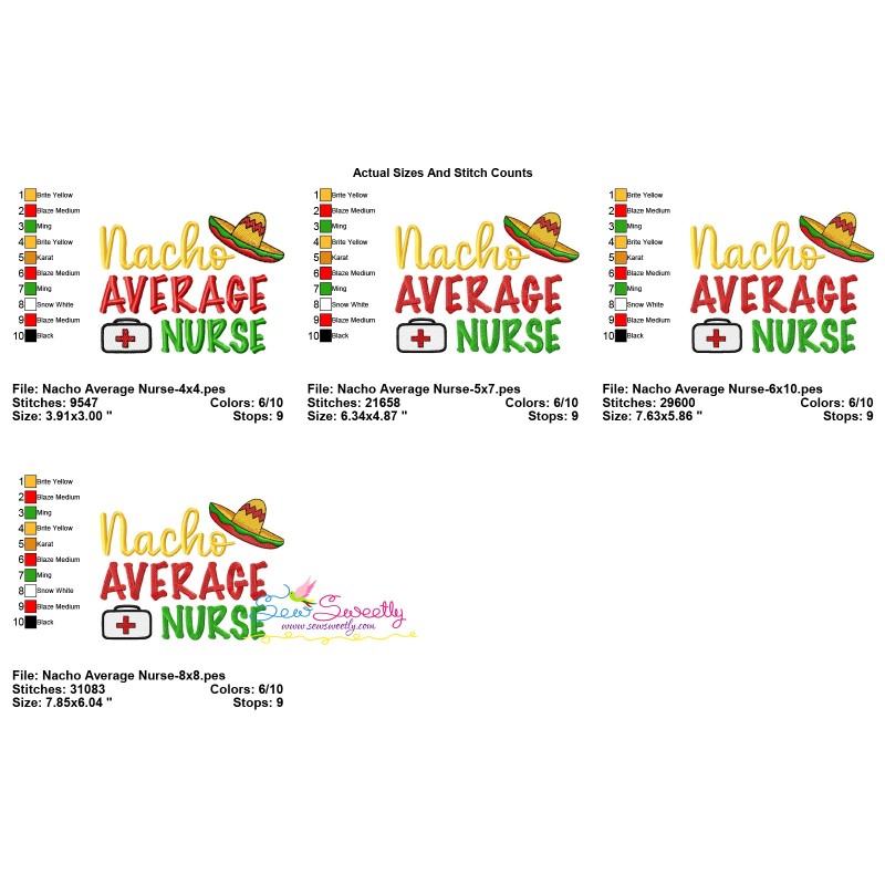 Nacho Average Nurse Exclusive Machine Embroidery Design Pattern.