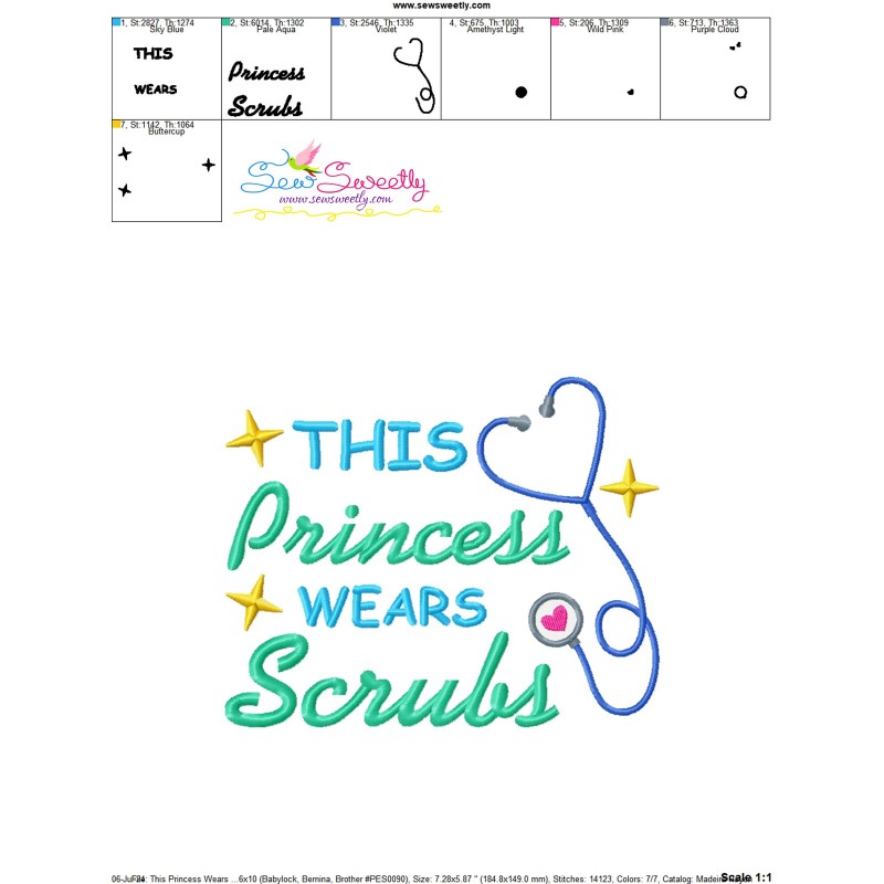 This Princess Wears Scrubs Exclusive Machine Embroidery Design Pattern.