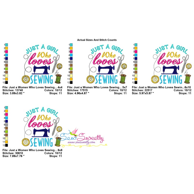 Just a Girl Who Loves Sewing Lettering Exclusive Machine Embroidery Design Pattern.