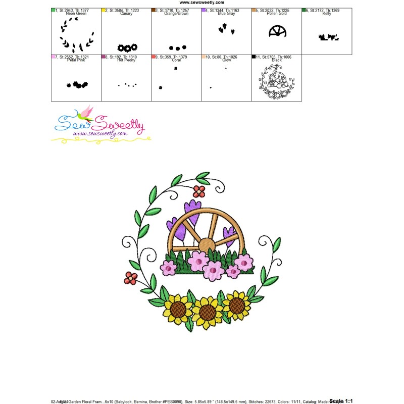 Summer Flower Frame-6 Embroidery Design Pattern-1