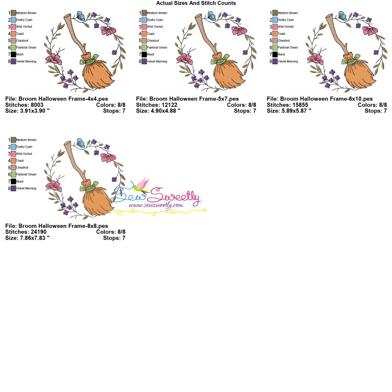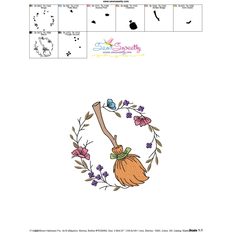 Broom Halloween Frame Exclusive Machine Embroidery Design Pattern.