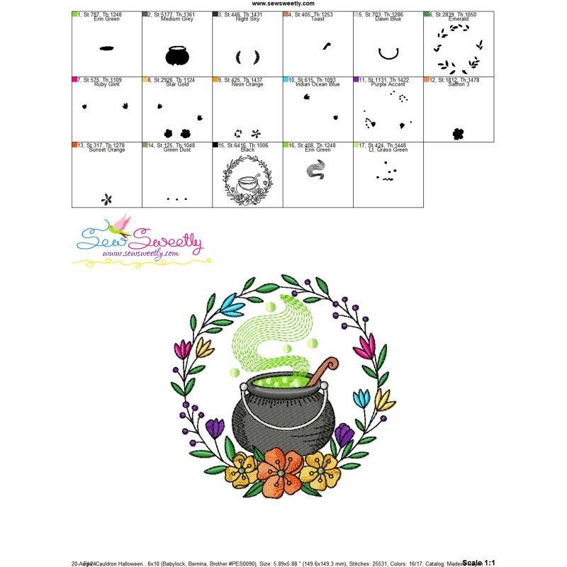 Cauldron Halloween Frame Exclusive Machine Embroidery Design Pattern.