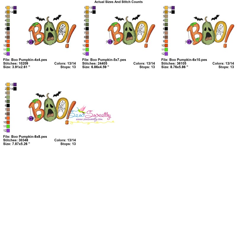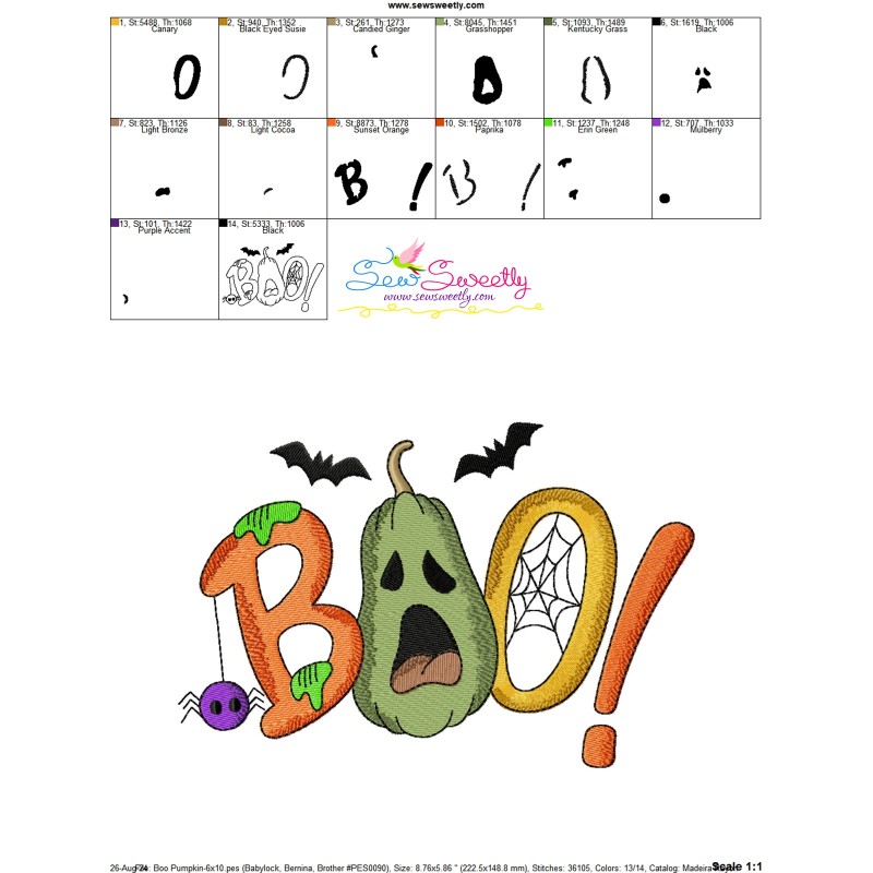Halloween Boo Pumpkin Exclusive Machine Embroidery Design Pattern.