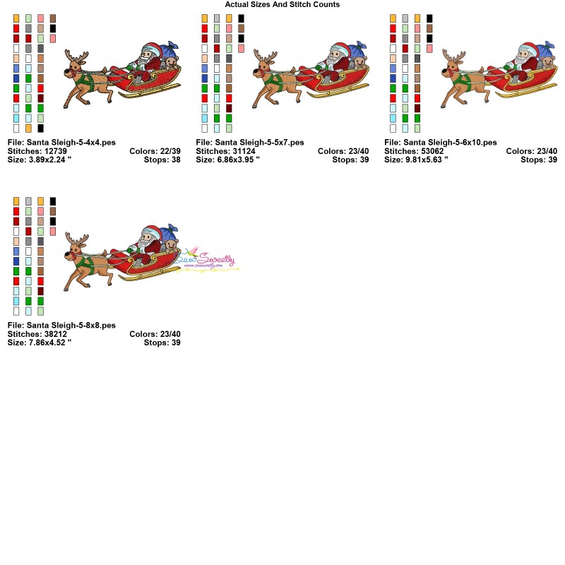 Santa Sleigh-5 Machine Embroidery Design Pattern For Christmas Embroidery Projects.