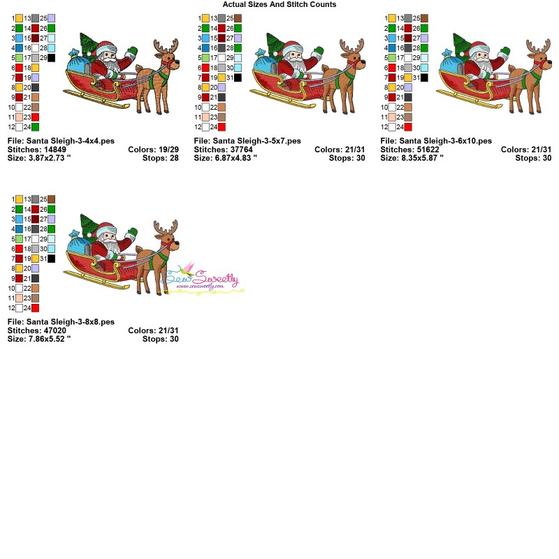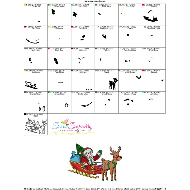 Santa Sleigh-3 Machine Embroidery Design Pattern For Christmas Embroidery Projects.