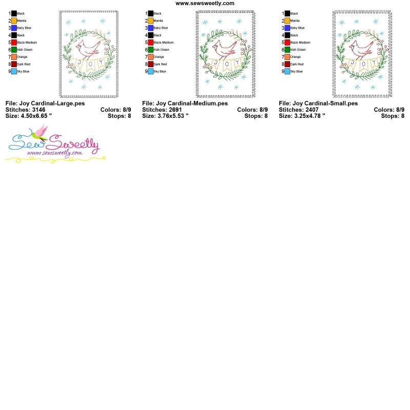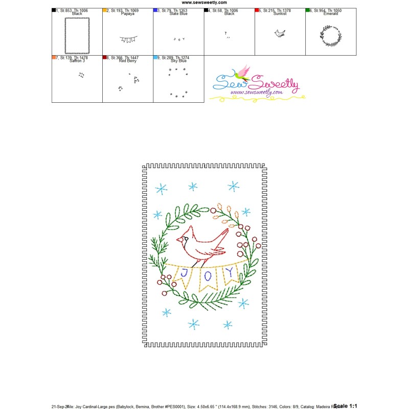 PDF color Chart and cardstock embroidery instructions PDF file included.