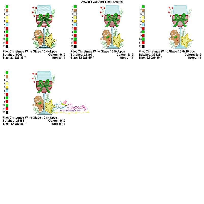 Christmas Wine Glass-10 Machine Embroidery Design Pattern For Christmas Embroidery Projects.