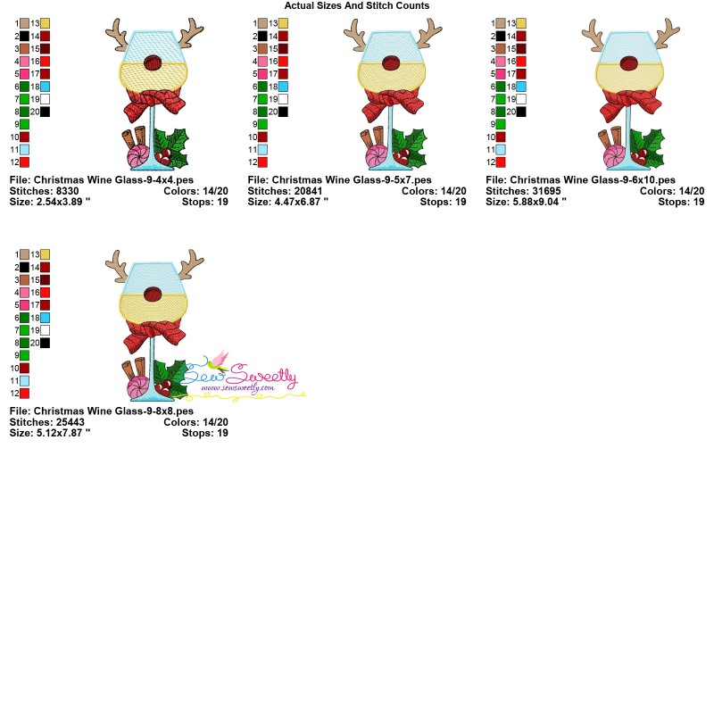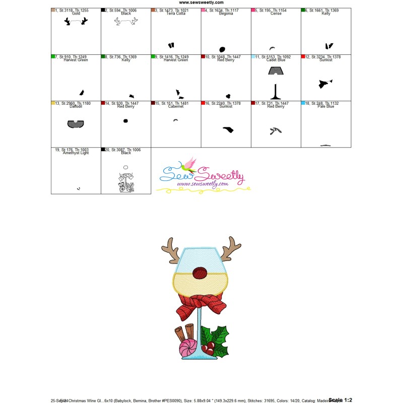 Christmas Wine Glass-9 Machine Embroidery Design Pattern For Christmas Embroidery Projects.