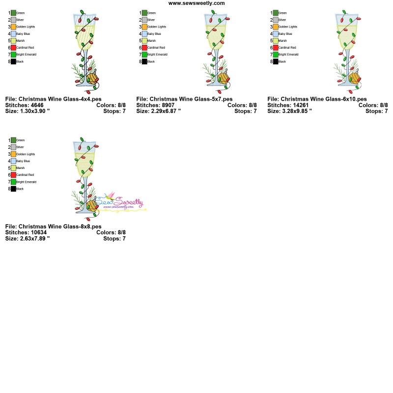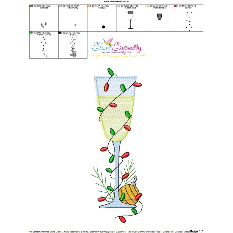 Christmas Wine Glass-6 Machine Embroidery Design Pattern For Christmas Embroidery Projects.