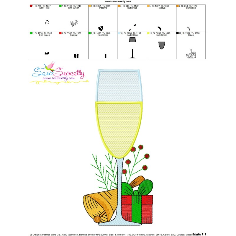 Christmas Wine Glass-3 Machine Embroidery Design Pattern For Christmas Embroidery Projects.