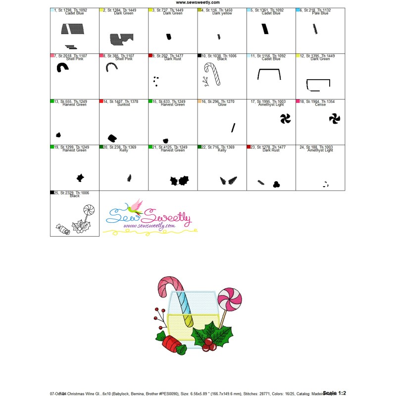 Christmas Wine Glass-1 Machine Embroidery Design Pattern For Christmas Embroidery Projects.