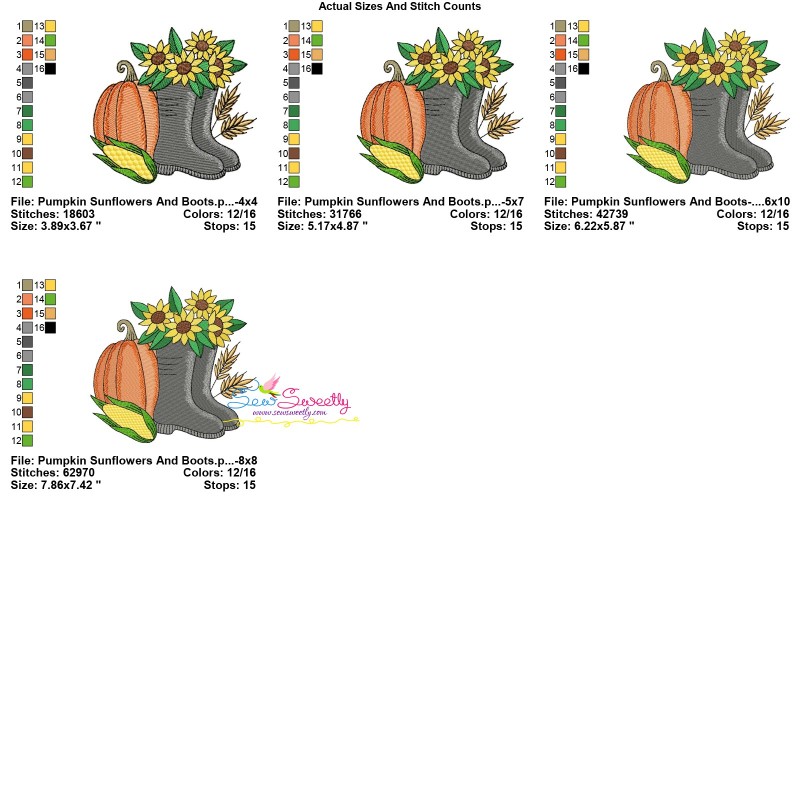 Pumpkin Sunflowers And Boots Exclusive Machine Embroidery Design Pattern.