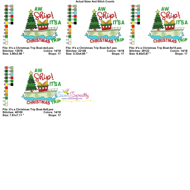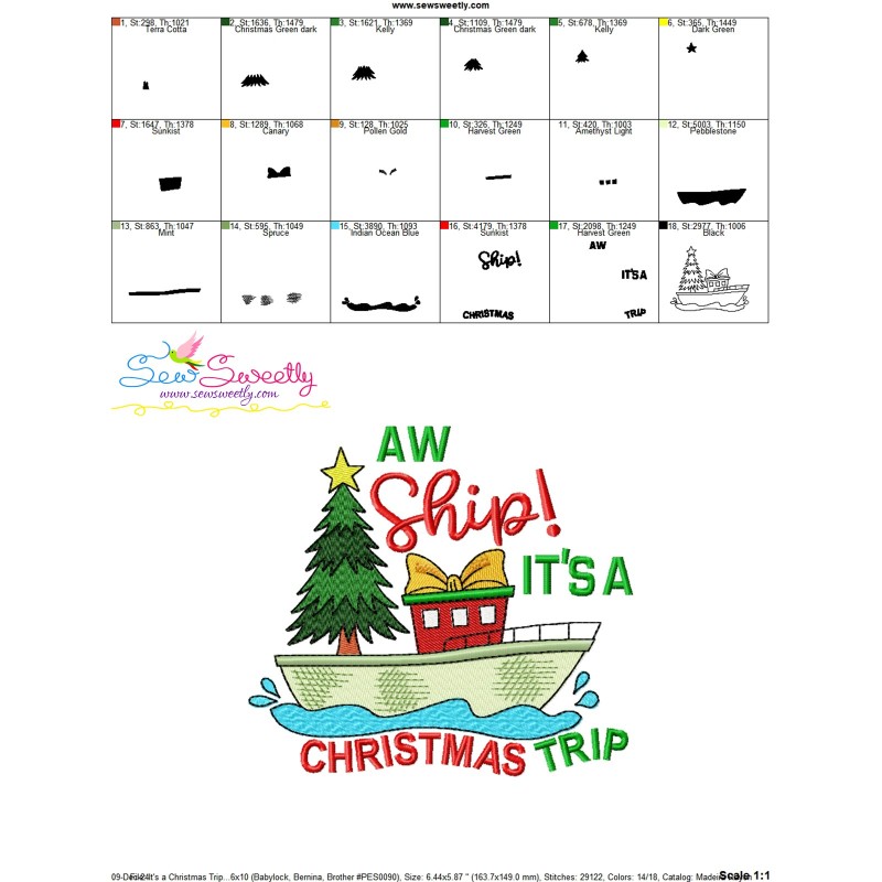It's a Christmas Trip Boat Machine Embroidery Design Pattern For Christmas Embroidery Projects.