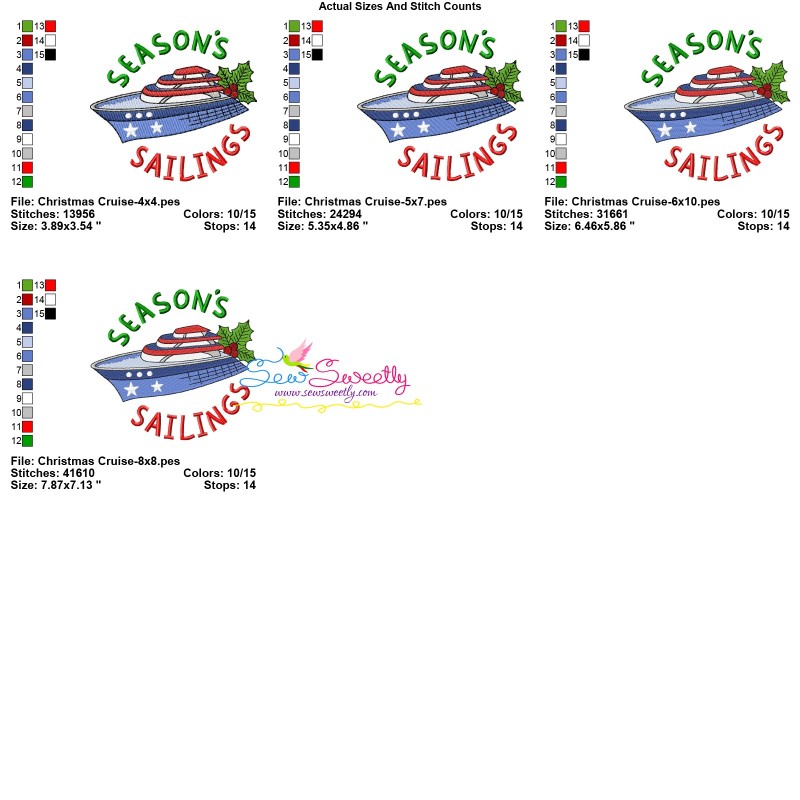 Included Design Sizes Are For 4X4, 5X7, 8x8, 6X10 and 12x12 Hoop.