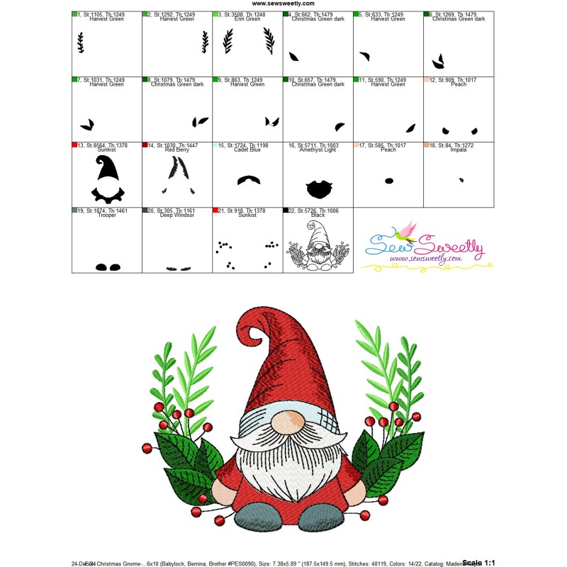 Christmas Gnome-7 Machine Embroidery Design Pattern.