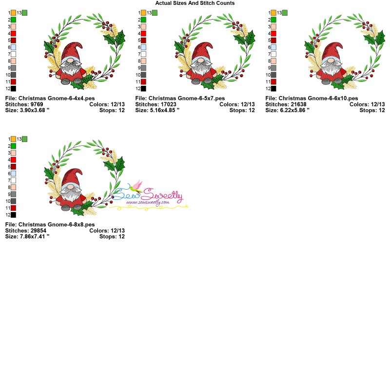 Christmas Gnome-6 Machine Embroidery Design Pattern.