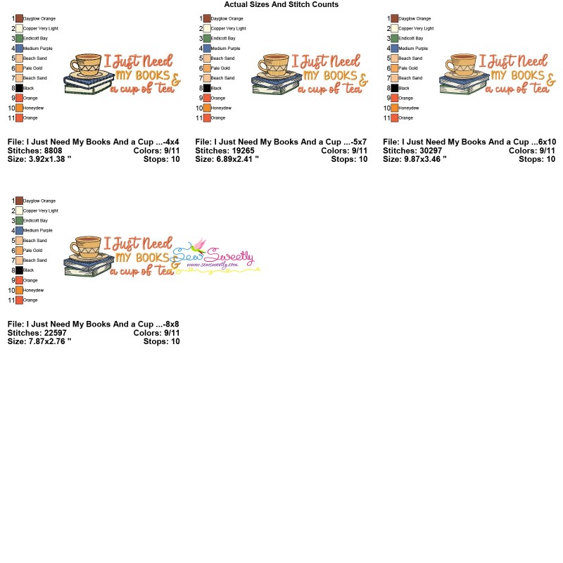 I Just Need My Books And a Cup of Tea Embroidery Design Pattern