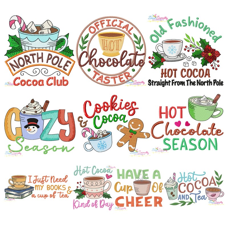 This Embroidery Design Set Includes 10 Beautiful Hot Cocoa And Chocolate Machine Embroidery Designs.