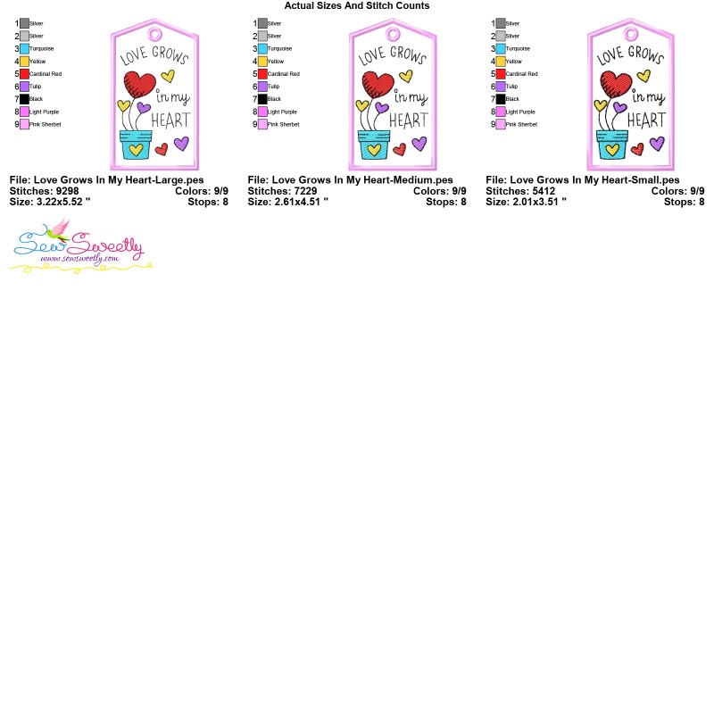 Love Grows In My Heart Valentine ITH Tag Exclusive Machine Embroidery Design Pattern.