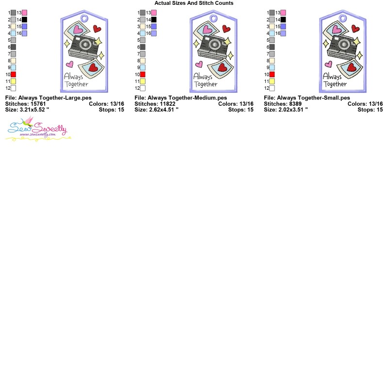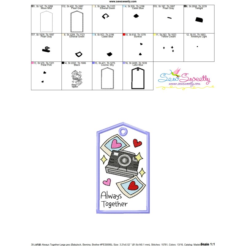 Always Together Valentine ITH Tag Exclusive Machine Embroidery Design Pattern.