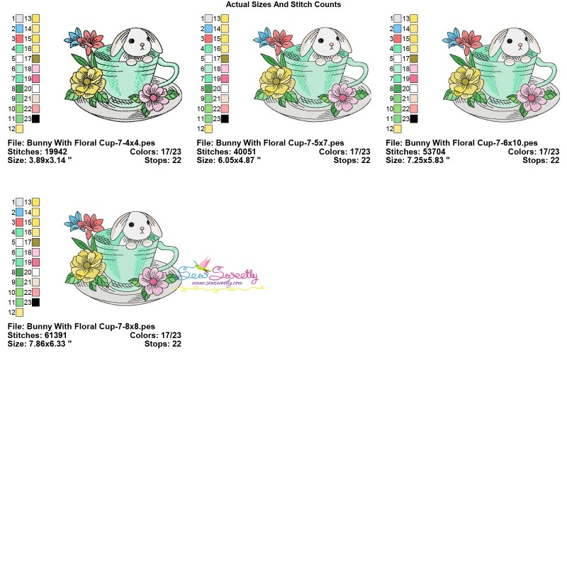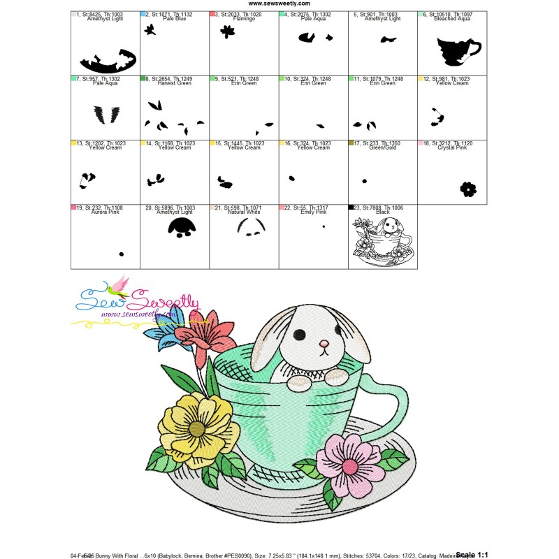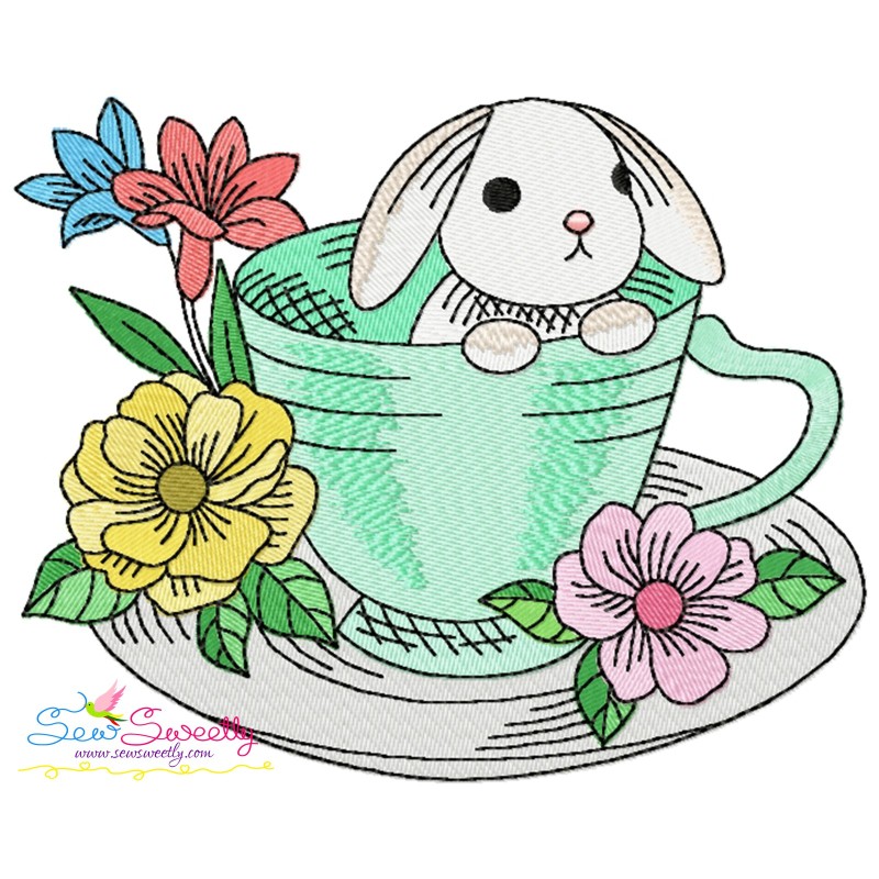 Bunny With Floral Cup - 7 Embroidery Design Pattern