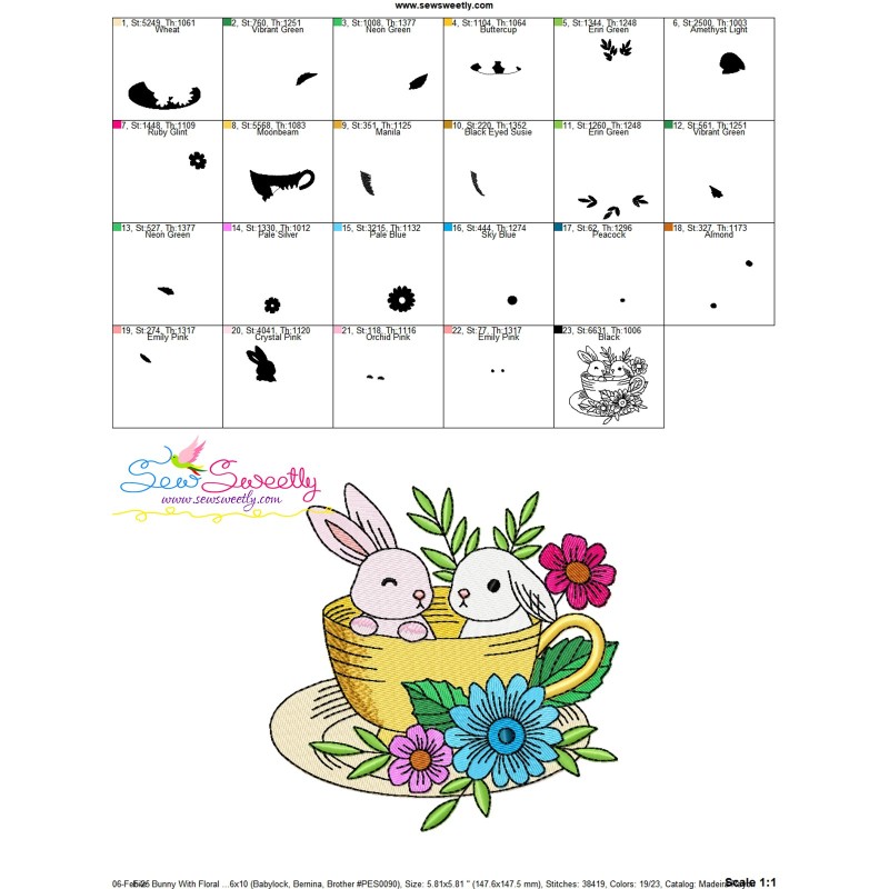 Bunny With Floral Cup - 5 Embroidery Design Pattern