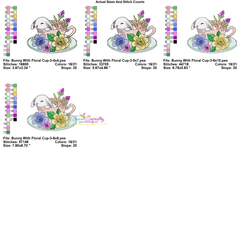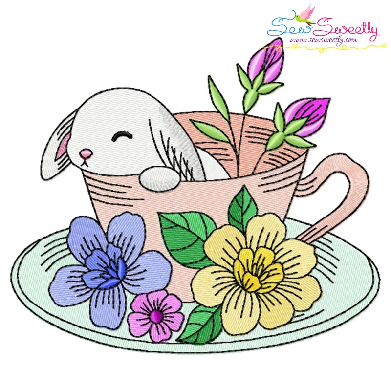 Bunny With Floral Cup - 3 Embroidery Design Pattern