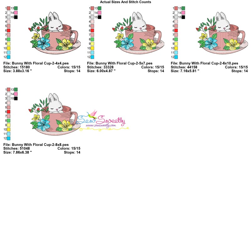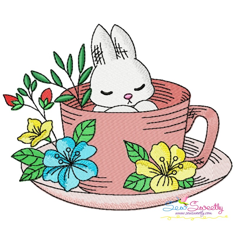 Bunny With Floral Cup - 2 Embroidery Design Pattern