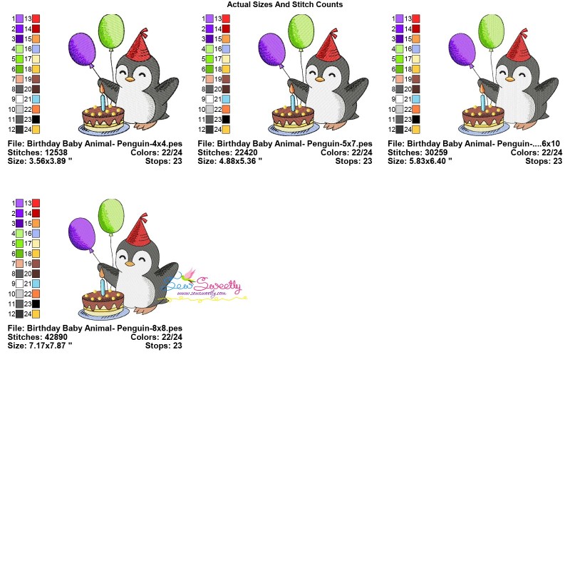 Birthday Baby Animal - Penguin Exclusive Machine Embroidery Design Pattern.
