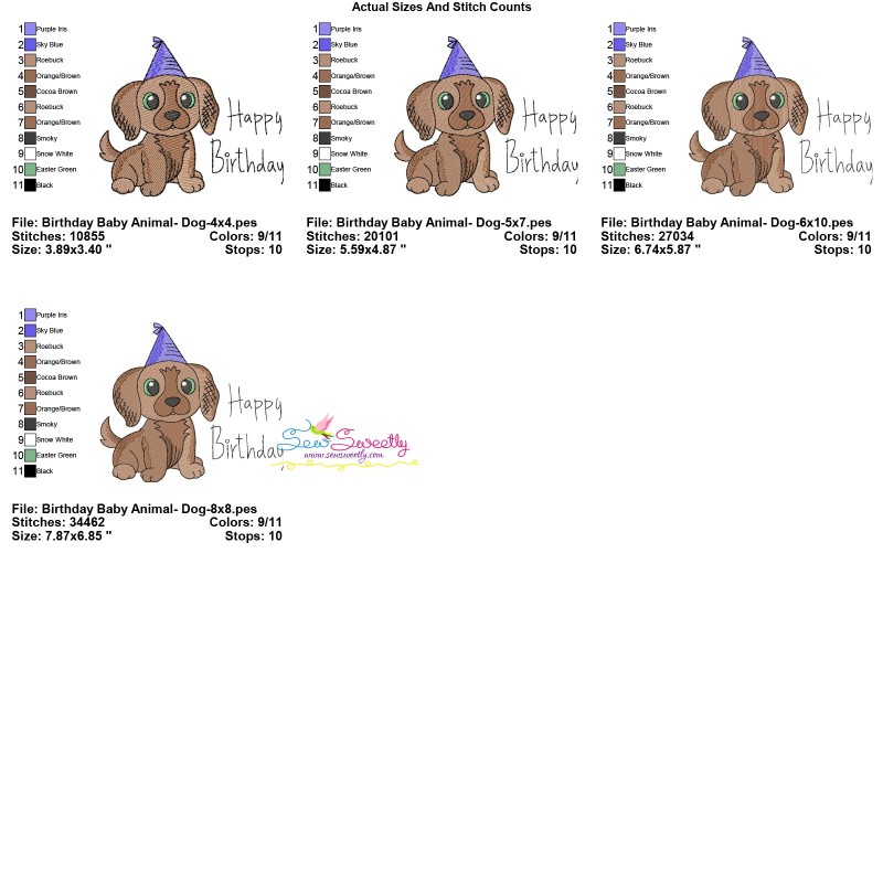 Birthday Baby Animal- Dog Embroidery Exclusive Machine Embroidery Design.