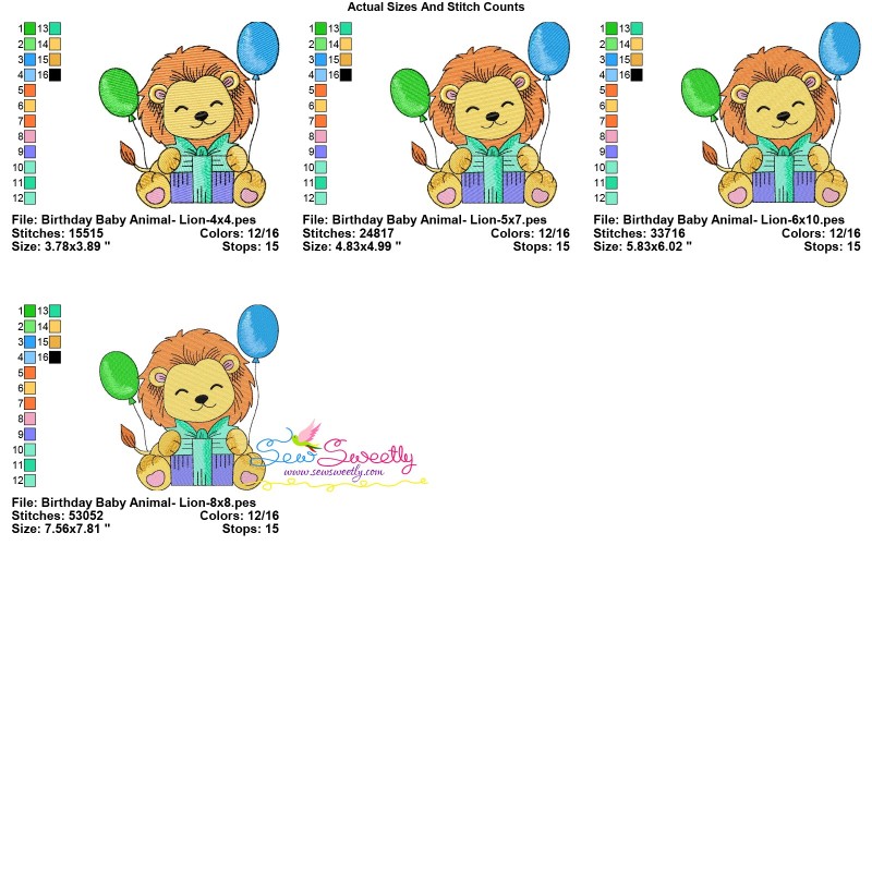 Birthday Baby Animal- Lion Embroidery Design Pattern