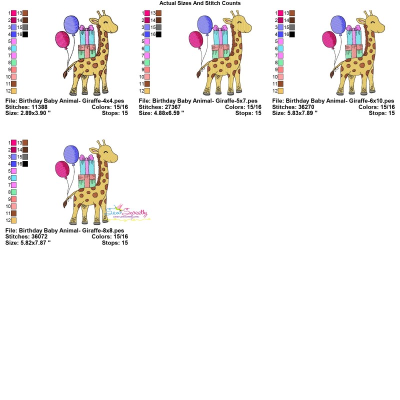 Birthday Baby Animal- Giraffe Embroidery Design Pattern