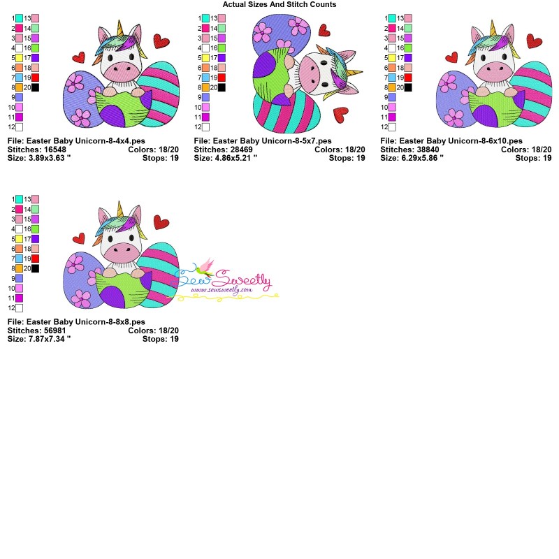 Easter Baby Unicorn - 8 Exclusive Machine Embroidery Design Pattern For Easter.