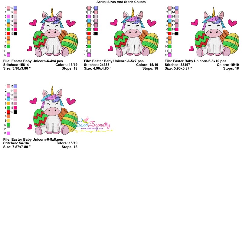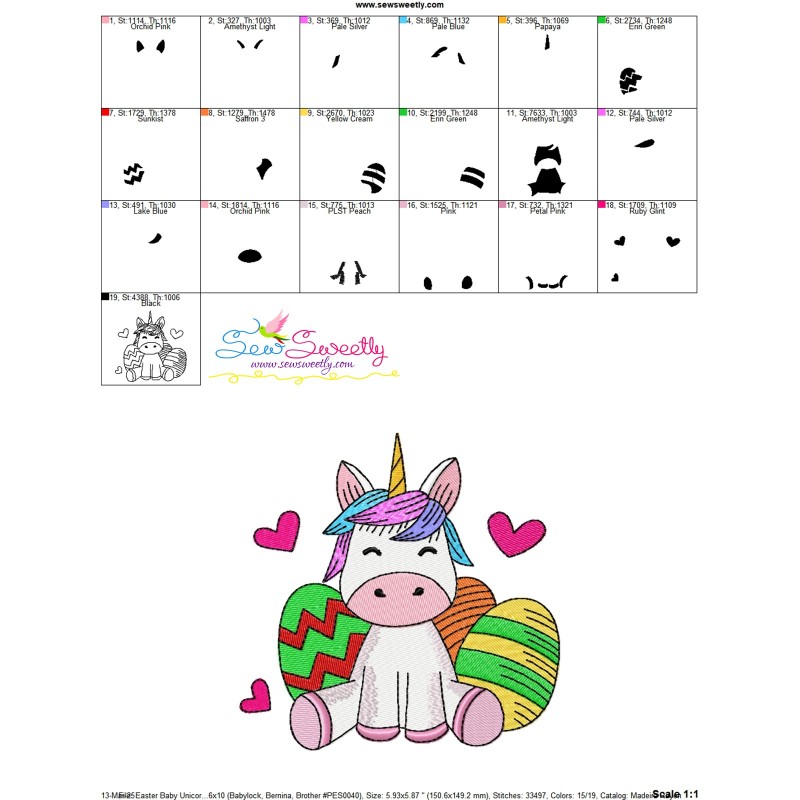 Easter Baby Unicorn - 6 Exclusive Machine Embroidery Design Pattern For Easter.
