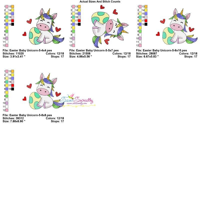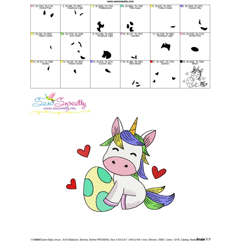 Easter Baby Unicorn - 5 Exclusive Machine Embroidery Design Pattern For Easter.