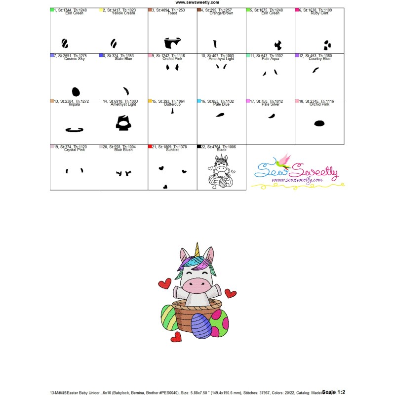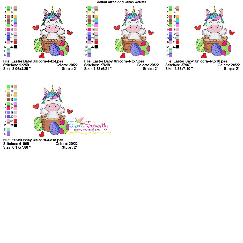 Easter Baby Unicorn - 4 Exclusive Machine Embroidery Design Pattern For Easter.