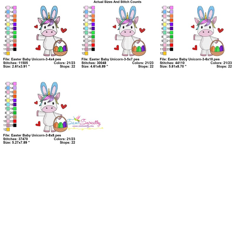 Easter Baby Unicorn - 3 Exclusive Machine Embroidery Design Pattern For Easter.